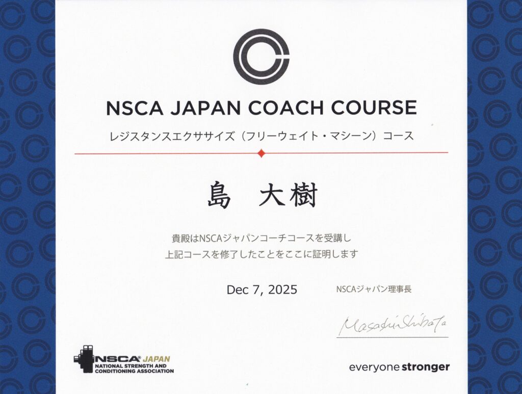 12月7日(日)に、NSCAジャパンのコーチコース、レジスタンストレーニング(フリーウェイト・マシーン)コースを受講してきました。会場は、岡山市東区にあります、IPU・環太平洋大学第1キャンパス・トップガントレーニングセンターで行われました。